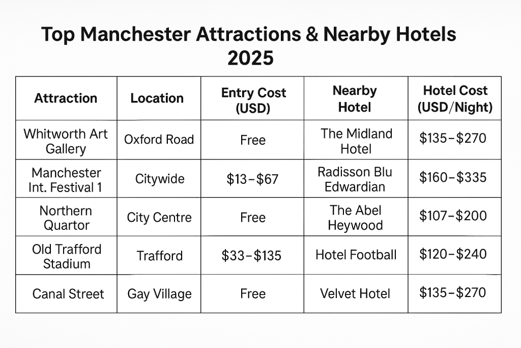 Manchester Cultural Capital 2025 – Manchester welcomed over 5 million tourists in 2024, according to Visit Manchester, and it’s no surprise why. This cultural capital blends historic factories with modern creativity, legendary football clubs, and world-class festivals. Whether you’re traveling as a family, couple, or solo adventurer, Manchester offers something unforgettable. Travel companies can promote music tours, match-day experiences, and hotel deals. Let’s explore the top Manchester attractions for 2025—and the best nearby hotels to relax after a day of excitement!